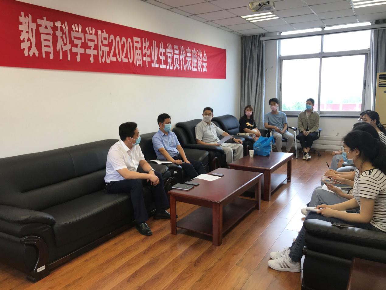教科网6月16日电(记者 武美贤)为倾听学生心声,提供交流平台,了解毕业生对学院各方面工作的想法和建议,6月14日下午,教育科学学院于1号楼603室召开2020届毕业生党员代表座谈会。会议由教科院党委副书记滕祥主持,教科院党委书记周友士、关工委常务副主任邓如陵及十名毕业生党员代表出席本次座谈会。
