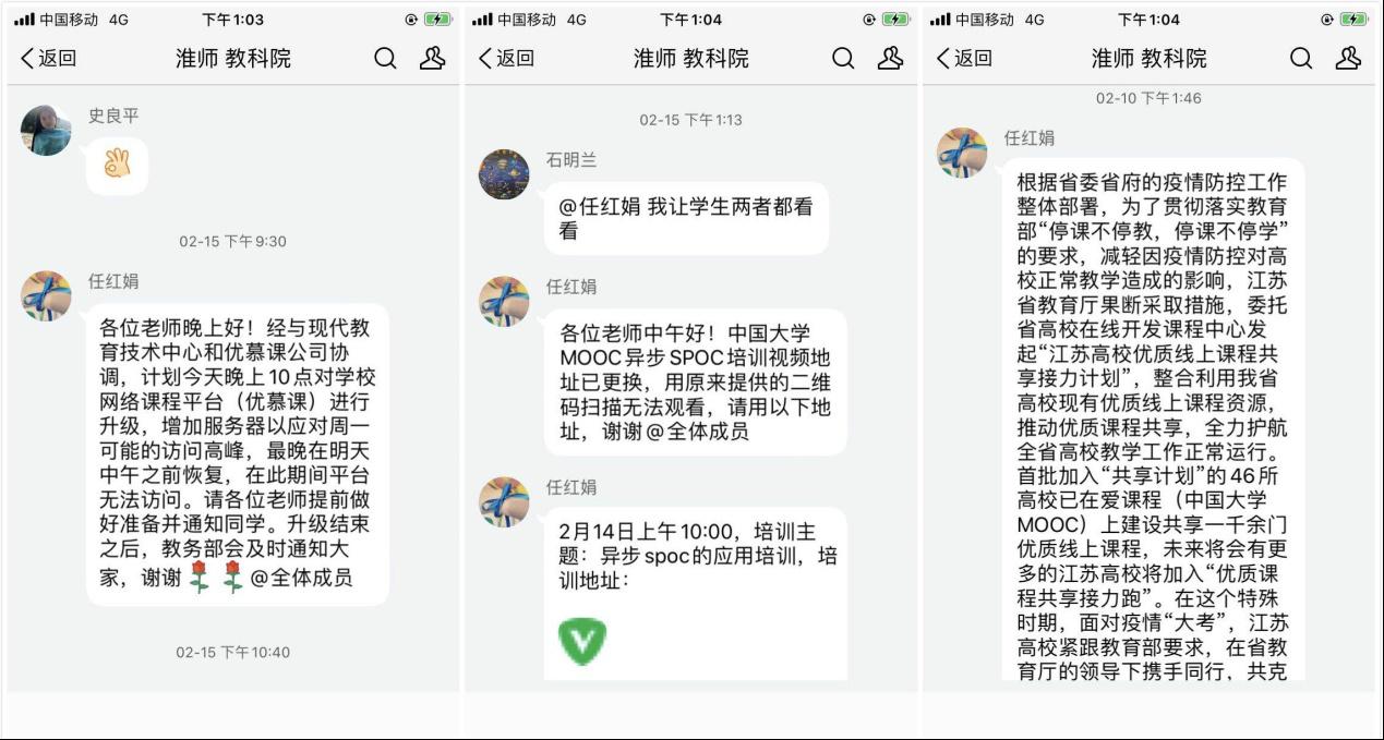 疫情当前,教科院各系部利用互联网、即时通讯等线上途径与家长和学生保持密切联系,建设网络课堂,开展网络教学,并在班级工作群内发布了关于线上学习的相关文件,详细部署了教学管理要求,积极稳妥地推进疫情期间各年级线上教学工作。老师们在网络教学之前,进行了相关技术培训,进一步熟悉中国大学MOOC、学习通、智慧树超星等教学平台,部分老师创新性地采用“腾讯课堂”直播、语音电话+屏幕共享的方式进行教学。网上教学方式更加新颖,师生互动活跃,教学效果良好。
