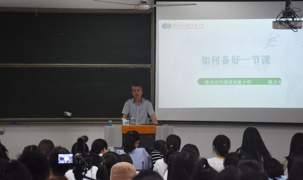 教科网6月27日电(记者 阚晨曦 吴伟成)实习在即,为给16级小学教育专业师范生提供一线教学方法指导,6月24日下午,教育科学学院诚邀淮安市外国语实验小学教务处主任陈太中开展主题为“如何备好一节课”的讲座。讲座由教育学系主任任红娟主持。