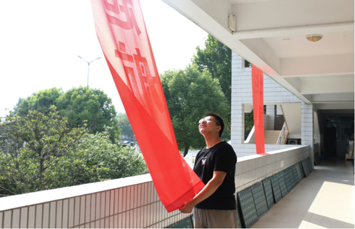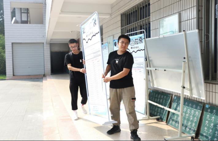 图为迎新准备工作。记者 赵新玥 摄