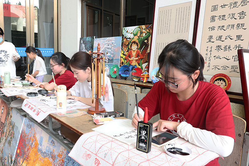 交流专业技艺,继承文化传统。教科院的迎新活动不仅是一次简单的迎接仪式,更是一次学生专业成果的展示。十余张展板全面生动地展示了学院的办学历史、发展现状和育人成果;书画作品让萌新们看到了“明天的我”;手绘班牌以及现场创作的书法折扇和绘画,让新生一见倾“新”。志愿者们独具创意,纯手工与新生一起制作的非遗漆扇精妙绝伦,现场古筝声响起,委婉动听。“古筝雅韵,漆扇传情”,旨在通过传统文化的展示,为新生们带来了一场视听盛宴。专属的“未来可期”百事可乐让新生带着梦想和希望起航。在文化互动与心灵交流中,让每一位新生感受到了教科院大家庭的独特新意与无限创意。这些活动不仅展现了教科院学子的专业素养和创意才华,也让新生们感受到了学院独特的艺术魅力和文化底蕴。