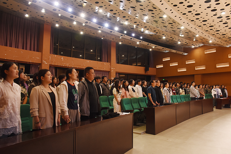 最后,全体师生合唱歌曲《歌唱祖国》,在歌唱中体会爱国情怀,抒发了对未来四年大学生活的美好愿景。