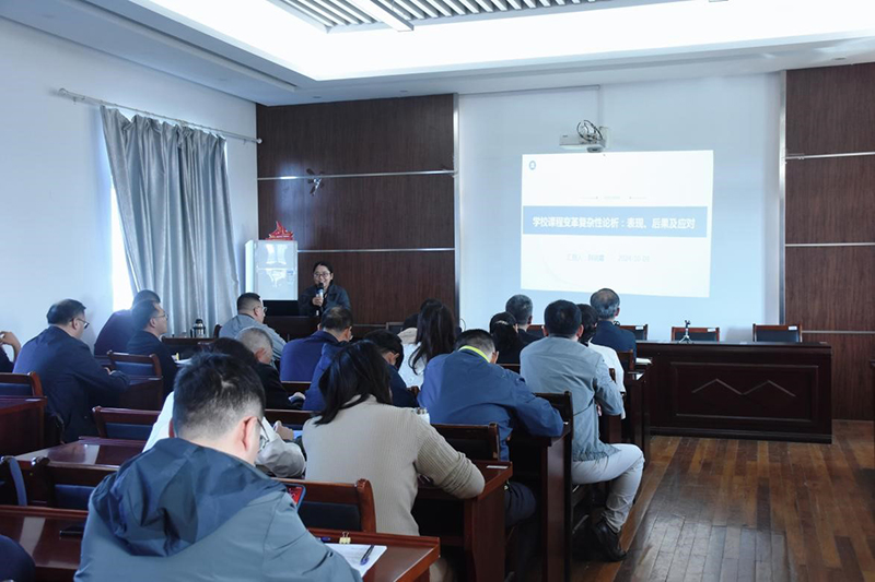 接着,韩晓霞围绕“学校课程变革复杂性论析:表现、后果及应对”这一核心议题展开分享。她从四个方面深入探讨了学校课程变革“复杂性”的特点与实际价值,并结合实际案例分析了这种复杂性带来的挑战和机遇。韩晓霞还就如何在课程变革中有效应对这些复杂性问题,提出了富有洞见的策略和建议,赢得了在场教师的一致认可。