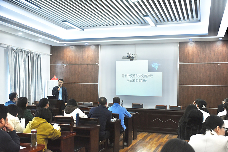 接着,王冠以“静态社交动作知觉的神经标记和加工特征”为主题,进行了深入浅出的精彩分享,他详细阐述了该课题的研究缘起及研究依据,深入剖析了相关模型和实验设计,使与会者对该领域有了更深刻的认识。
