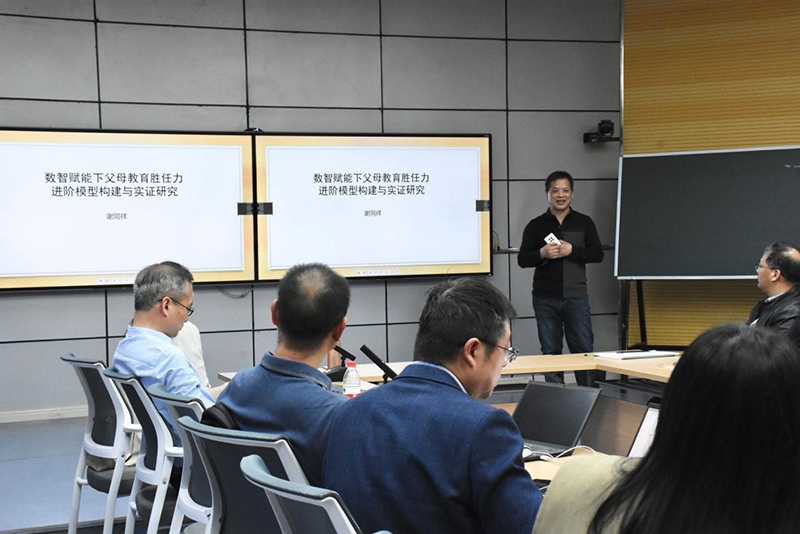 接着,谢同祥围绕教育的数字化转型问题进行了精彩报告。他通过对国内外家庭教育现状和趋势的广泛研究,并结合实地实证考察成果,创新性地构建了数智赋能下父母教育胜任力进阶的初步模型。谢同祥表示,后续将积极开展实证研究,探索推广相关课程,助力家庭教育迈向新台阶。