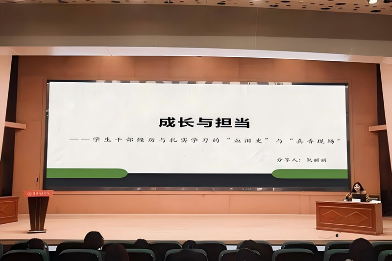 包丽丽结合自身曾任院学生会主席、校礼仪部部长等经历,生动诠释了学生干部的核心价值。“这段经历让我从‘任务执行者’蜕变为‘团队引领者’,”她指出,“组织活动、协调矛盾的过程,不仅锤炼了抗压能力与沟通技巧,更让我学会如何在服务中实现自我成长。”她特别强调,学生干部需摒弃“形式主义”,以“解决问题”为导向,将每一份责任转化为成长的阶梯。