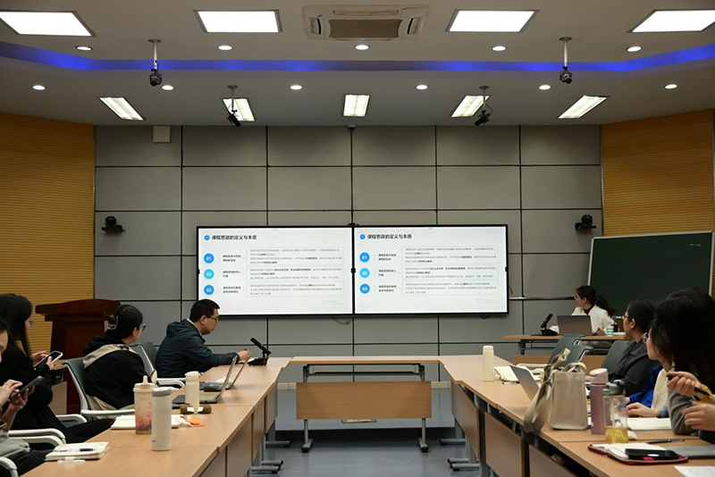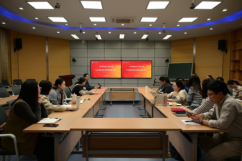 教科网4月17日电(记者 刘靖鑫 赵思晗)4月16日下午,教育科学学院、新闻与传播学院在2号楼智慧教室联合举办了主题为“专业课程思政元素的挖掘与融入”的教学研讨活动。本次活动由教科院副院长杨绪辉主持,主讲嘉宾为蔡月亮老师和申小春老师,两个学院的青年骨干教师参加了本次活动。