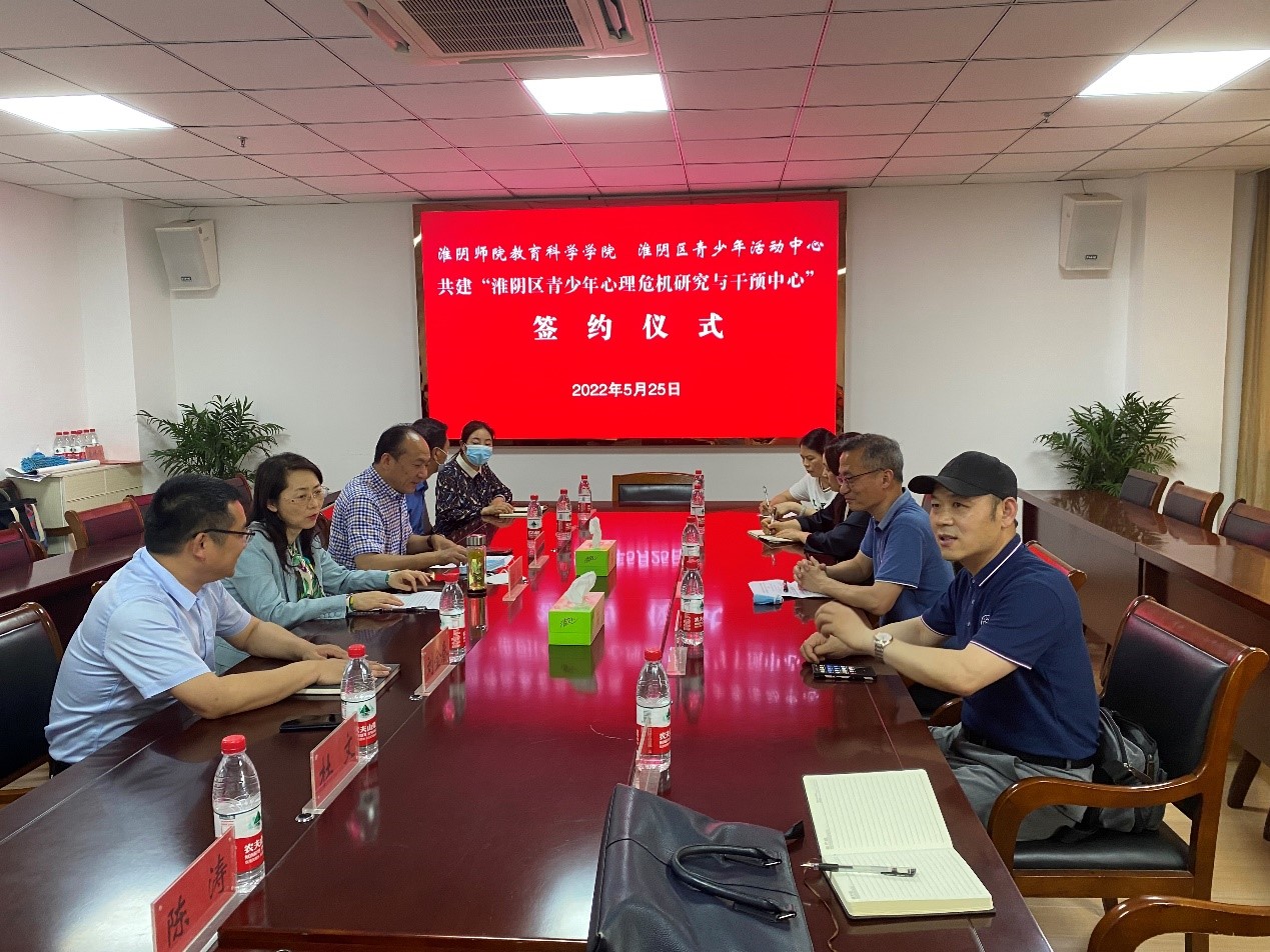 签署共建协议后,与会的各位领导和专家针对当前淮阴区青少年的心理健康问题进行了深入热烈的讨论。目前,淮阴区青少年心理健康建设刻不容缓,但学校对心理健康教育意识还较为薄弱,学校的心理健康教师水平亟待提高。这次以该中心为平台,通过校地合作,深入融合,对于提升淮阴区青少年心理健康水平和教师专业水平可起到重要推动作用。