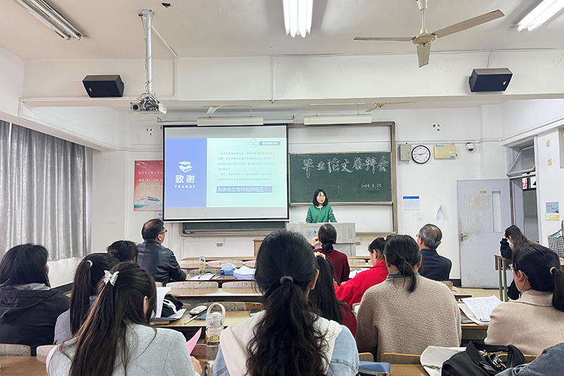 在每个答辩组内,老师们凭借丰富的学术经验和敏锐的专业思维,结合每位学生的论文内容,提出了富有深度和启发性的问题,这些问题不仅考验了学生们的学术水平及应变能力,更能引领他们进一步思考研究的意义。在提问之后,老师们还指出了每位学生论文的优缺点,并对学生们的论文提出了宝贵的建议,帮助大家梳理研究思路,同时也激发了学生们未来对学术探索的新灵感。在严肃的问答之余,评委老师的幽默点评也缓和了紧张的气氛。答辩会结束后,各答辩组的组长都根据本组的答辩情况,对整场的答辩情况进行了总结,祝贺大家顺利完成答辩任务,展现了高翻学子应有的风采,同时也要求学生们根据答辩老师的问题和建议,进一步打磨论文,力争做到精益求精。