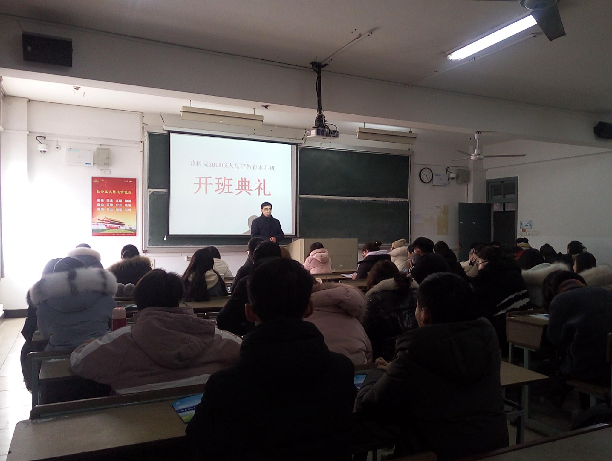 教科网1月22日电(记者 胡萍)2018118日royal皇家88平台成人高等教育2018级新生报到了,我院2018级成人高等教育录取本科学员数1450人。2018119日上午九点教育科学学院本部教学点的近150名新生开学典礼在交通路校区综南203举行,参加会议的有教科院分管成人教育的副院长何杰、成人教育教务员以及成人教育2018级新生班主任。