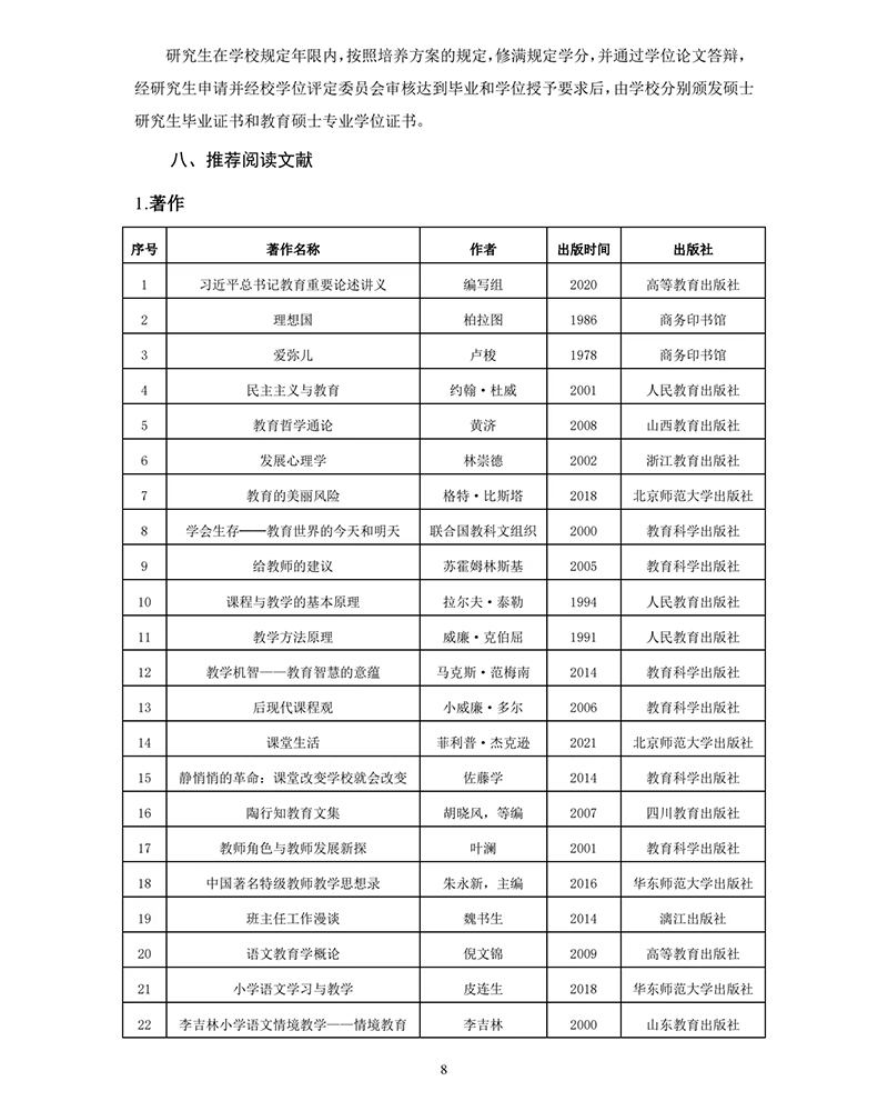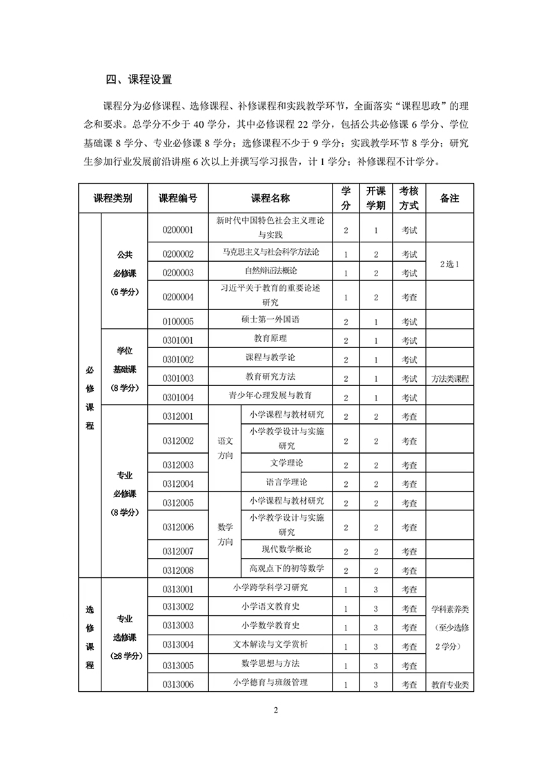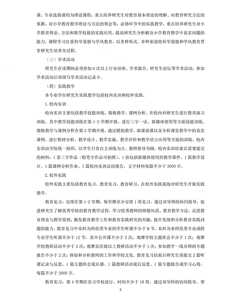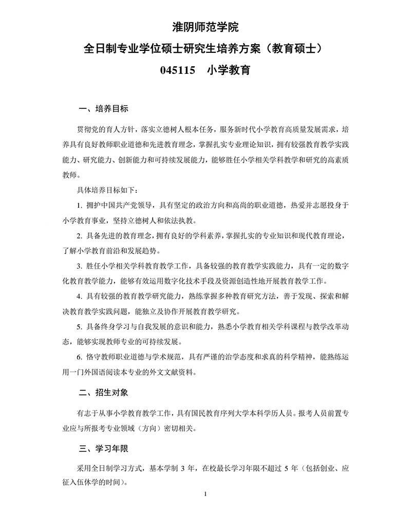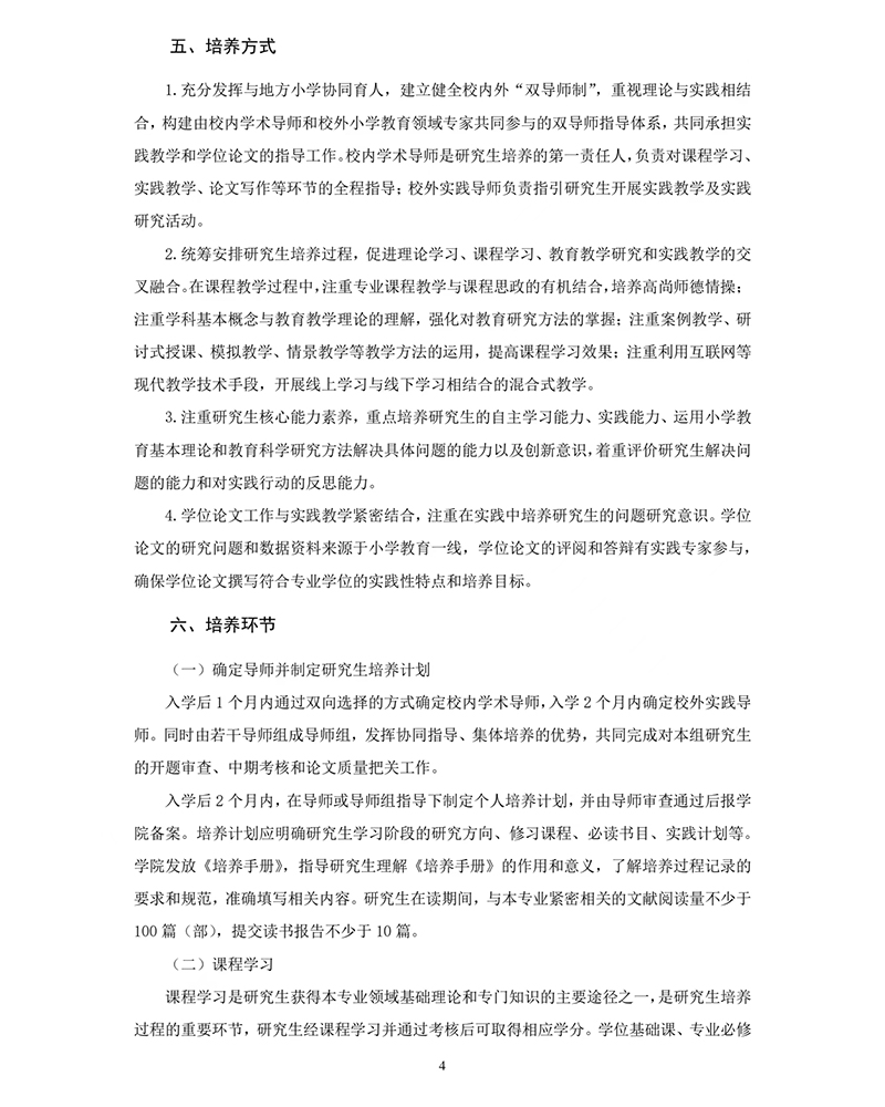 全日制教育硕士专业学位(小学教育)研究生培养方案