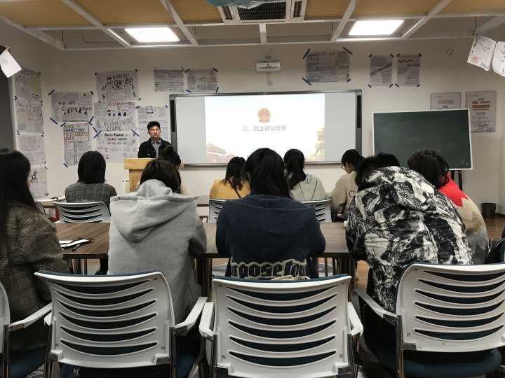 会议共有五项议程:《中国共产党支部工作条例(试行)》学习分享、《孤岛32年》学习分享、民主评议、选举优秀名额、党日活动。在谈及《中国共产党支部工作条例(试行)》时,丁雅丽认为,作为党员在党支部的依托下,受党支部领导和管理,积极参加党支部开展的各项组织活动,感受到党员发展背后温暖的助推力量。陈佳泓深感共鸣,她结合《孤岛32年》交流了自己受党支部精神影响在大局意识、整体观念、党性养成等方面的进步。她尤其感慨王继才身上“些小吾曹州县吏,一枝一叶总关情”的身处基层而忧家国天下的大爱与忠诚,希冀今后能向王继才看齐。在民主评议议程中,党员们严肃自省,倾听互评,清晰深刻地认知了自我的足与不足,勉励先进,明确了今后的调整方向。最后,丁雅丽作为联合支部二书记,为在座党员、预备党员开展了一堂题为《学习两会精神 促进教育发展》的党日活动。对于在座的师范生党员,她提出六点要求:一、多读书,多实践,提升自己生命质量;二、虚心请教,取长补短;三:争做创新教师;四、善于利用最新教育资源;五、培养个人良好心理品质;六、做一名有魅力的老师。