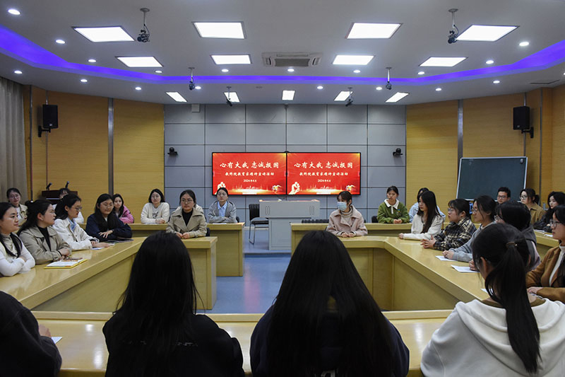 教科网4月12日电(记者 唐银丽 )为了增强党员们的爱国情怀,深刻领悟并弘扬“教育家精神”,4月11日晚,教科院于智慧教室举办了“心有大我 至诚报国”教育家精神宣讲活动,辅导员张菁菁老师、顾伊荻老师出席活动,教科院全体非毕业班学生党员参加宣讲,会议由张菁菁主持。