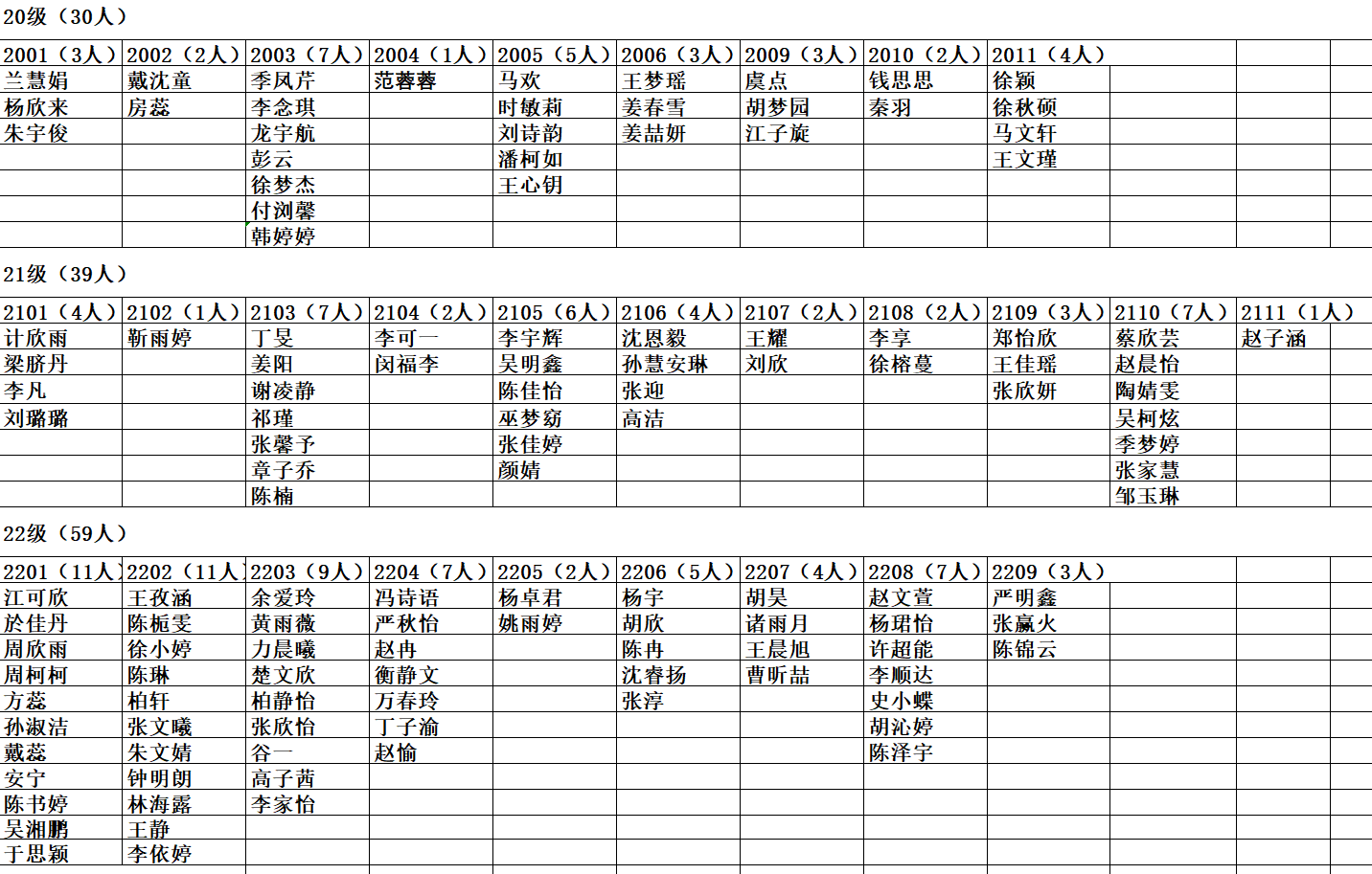 经本人申请,党支部教育、培养和考察,学院党委研究同意,对2023年下半年拟吸收为积极分子的人选进行公示。对公示人选有不同意见者,请于2023年11月10日前,当面或署名书信、电话向学院党委反映。公示名单如下: