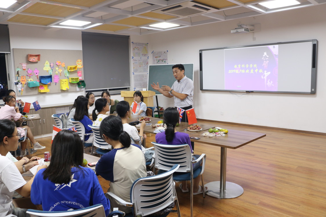 教科网9月15日电(记者 周梁阳光)在中秋佳节来临之际,教科院邀请赛埔语言培训中心老师蒋梦雯于一号楼203和1907班学生品尝月饼,交流雅思考试的经验,教科院党委副书记1907班主任滕祥主持此次座谈会。