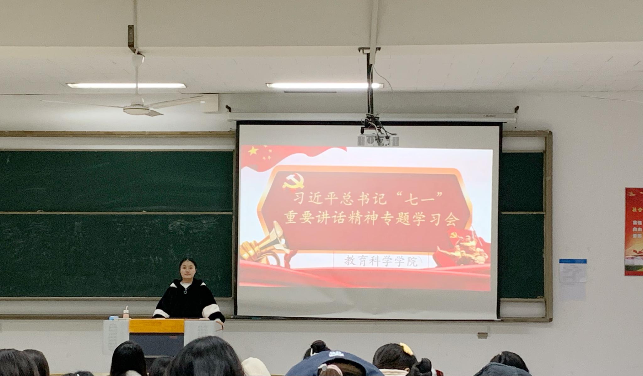 教科网1112日电(记者 邢琅 罗招雪)为促进当代大学生对习近平总书记“七一”重要讲话精神的理解,促使其深入了解肩负的国家使命与时代责任,11月10日下午,royal皇家88平台教育科学学院团委导师团于崇文楼102阶梯教室开展“建党百年,风华正茂”示范课。本次示范课由教科院团委书记顾伊荻老师主讲,21级和20级各班团支书参加。