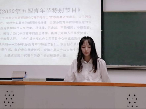 (图为“团支书罗未在讲解五四特别节目”)