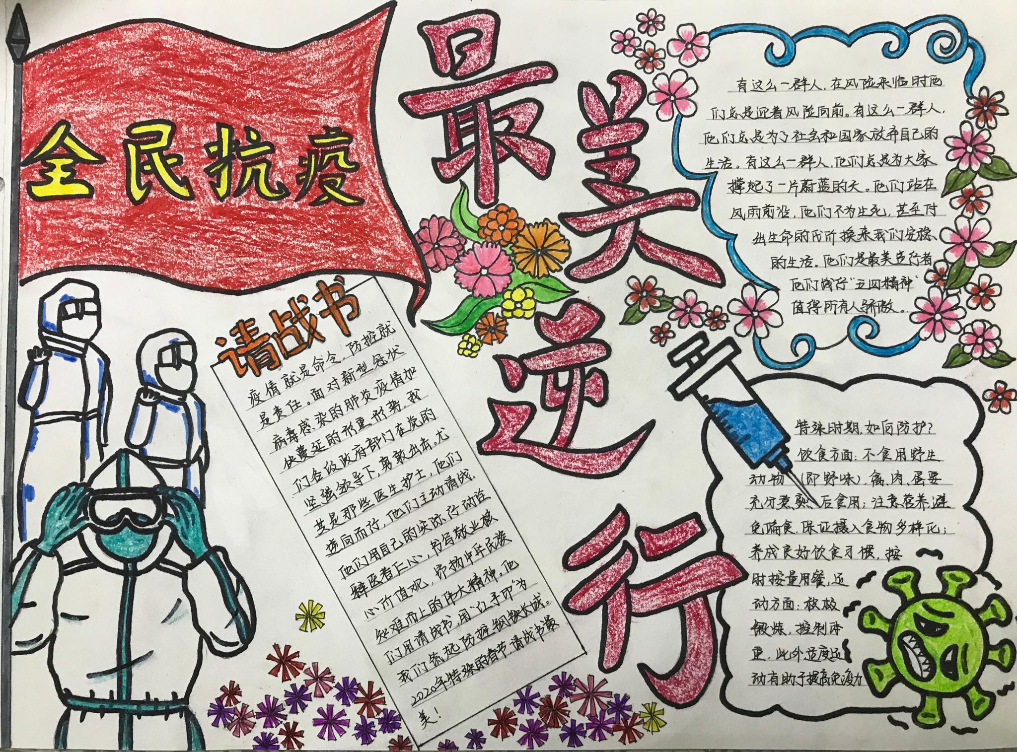 通过开展“手绘逆行者,抗疫正当时”绘画类活动,以色彩丰富的作品,提升同学们的艺术欣赏水平,激励学生不负韶华,攻坚克难。营造众志成城、团结一心、战胜疫情的浓厚氛围。