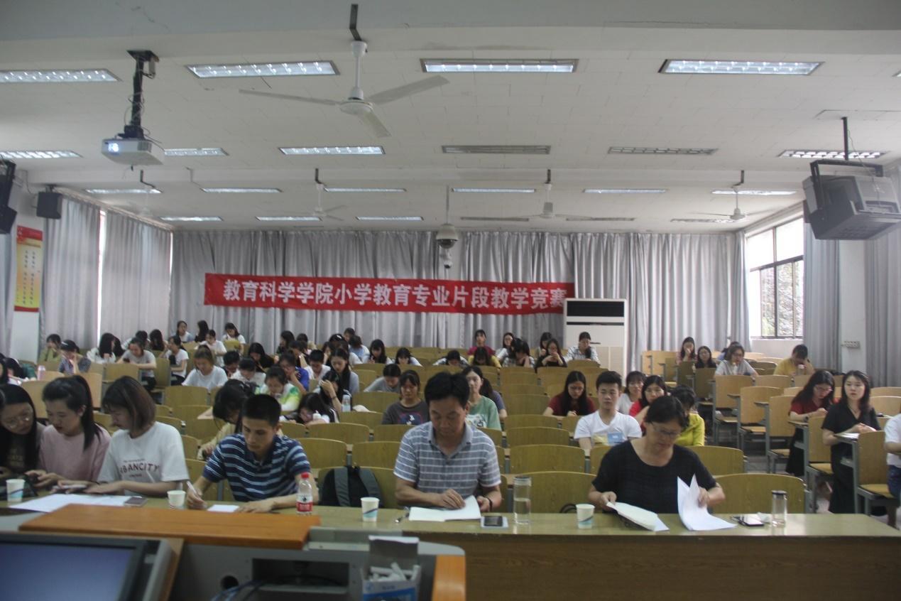 教科网6月29日电(记者 杭姝妤 吴伟成)为检验同学们对教材解读和课堂设计能力,6月27日,教育科学学院于崇文楼阶1-102等教室举行小学教育专业片段教学竞赛,共有24位选手参与竞赛。吉咸乐、赵正新、韩晓霞、石明兰、胡宗芳、胡萍、陈剑昆、朱守信等老师担任评委,小学教育专业2016级、2017级同学全程观摩。