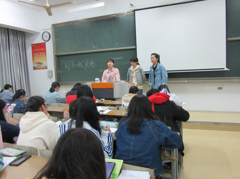 教科网4月27日电(记者 杭姝妤)为确保2019年“行知班”选拔工作顺利进行,由17级行知班同学组成宣讲团队于4月25日晚自习到选拔对象所在班级进行宣讲,夏晶莹同学为本次宣讲主要负责人。宣讲对象为17级和18级小学教育(师范)、教育技术学(师范)学生。
