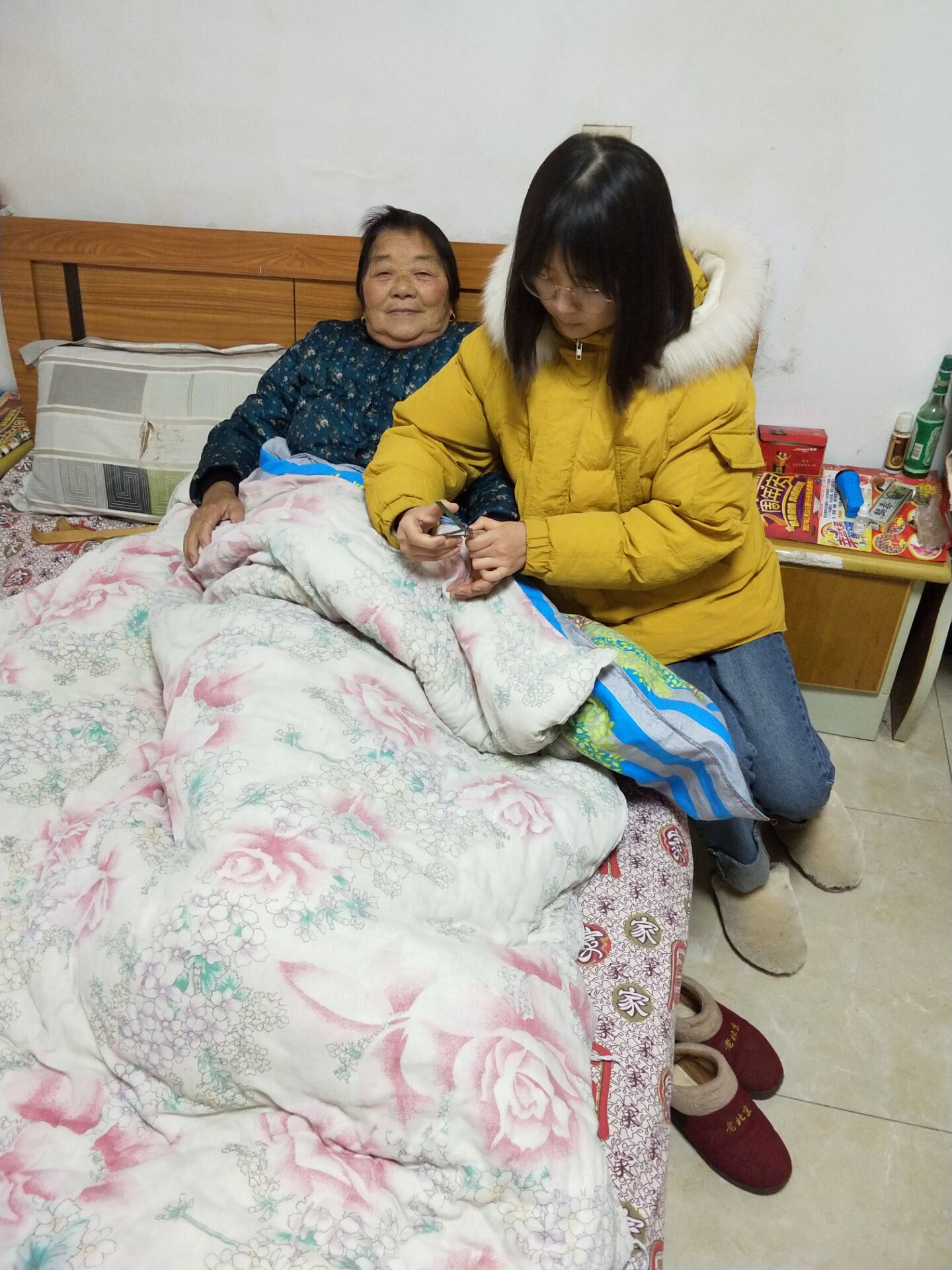 上午8点,全班同学乘车到本地的一所敬老院。到了敬老院后,负责人将同学们分为两队,一队负责帮老人打扫卫生、做清洁工作,一队负责陪老人聊天、给老人读报纸等。同学们都各司其职,活动有条不紊地进行着。老人们见到同学们很开心,就像看到自己的孙子孙女一样。同学们和老人自由交谈的同时,认真倾听老人们讲述着改革开放前后的个人经历, 令同学们了解我们今天的幸福来之不易, 同学们也把自己在外读书情况以及自己家乡情况给老人们一一讲述 , 一边跟老人谈心一边为老人锤背。就这样,一个上午就不知不觉地过去了。离开敬老院时,老人们叮嘱同学们好好学习,以后有机会再来。