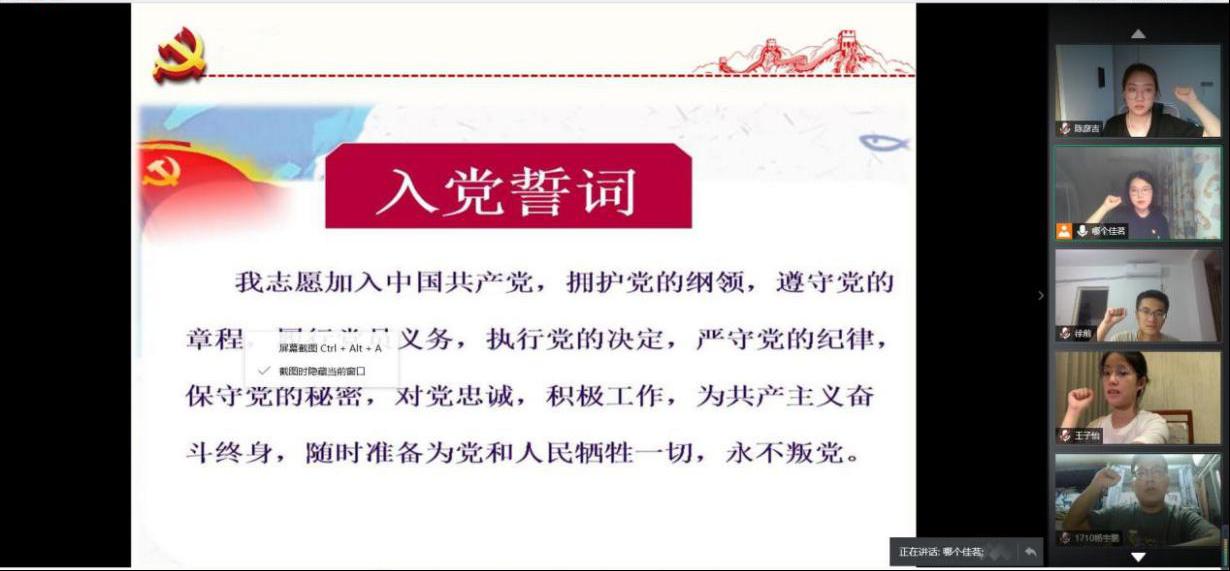学生党员王梦云写道:“习近平总书记的回信鼓舞、激励了北大援鄂医疗队的“90后”党员,同时也鼓励了我们。我认为我们应该时刻牢记总书记在回信中的谆谆嘱托,学好专业理论知识,并把每一段重要的际遇都当作人生难得的历练,不断坚定爱国力行的使命责任,把奋斗和责任变成最美的青春印记。我们是年轻的一代,也是有理想、有本领、有担当的新时代中国青年,我们应该牢记主席信中的教诲嘱托,在理论和实践当中提升自己。”最后由学生第四党支部书记钱淼党带领大家回顾庄严的入党誓词。