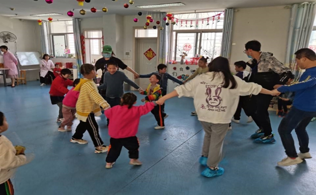 5月8日下午两点,天气炎热,志愿者们不辞辛苦从学校出发,按时到达活动场地。到场后志愿者遵循工作人员的指导,与这些特殊孩子进行互动,带着他们一起玩老鹰捉小鸡、丢手绢等游戏。大手拉着小手,笑脸迎着笑脸,在快乐中志愿者与孩子们愈加亲密。游戏结束后孩子们明显开朗了许多,其中一位小朋友拉着志愿者的衣服说“有姐姐的陪伴真好,最喜欢姐姐了。”随后志愿者给孩子们分发了用义卖得来的钱买来的小礼物,还给这些孩子讲了许多故事:有想象丰富的童话故事,有慷慨激昂的党史故事,还有奇幻瑰丽的神话故事……