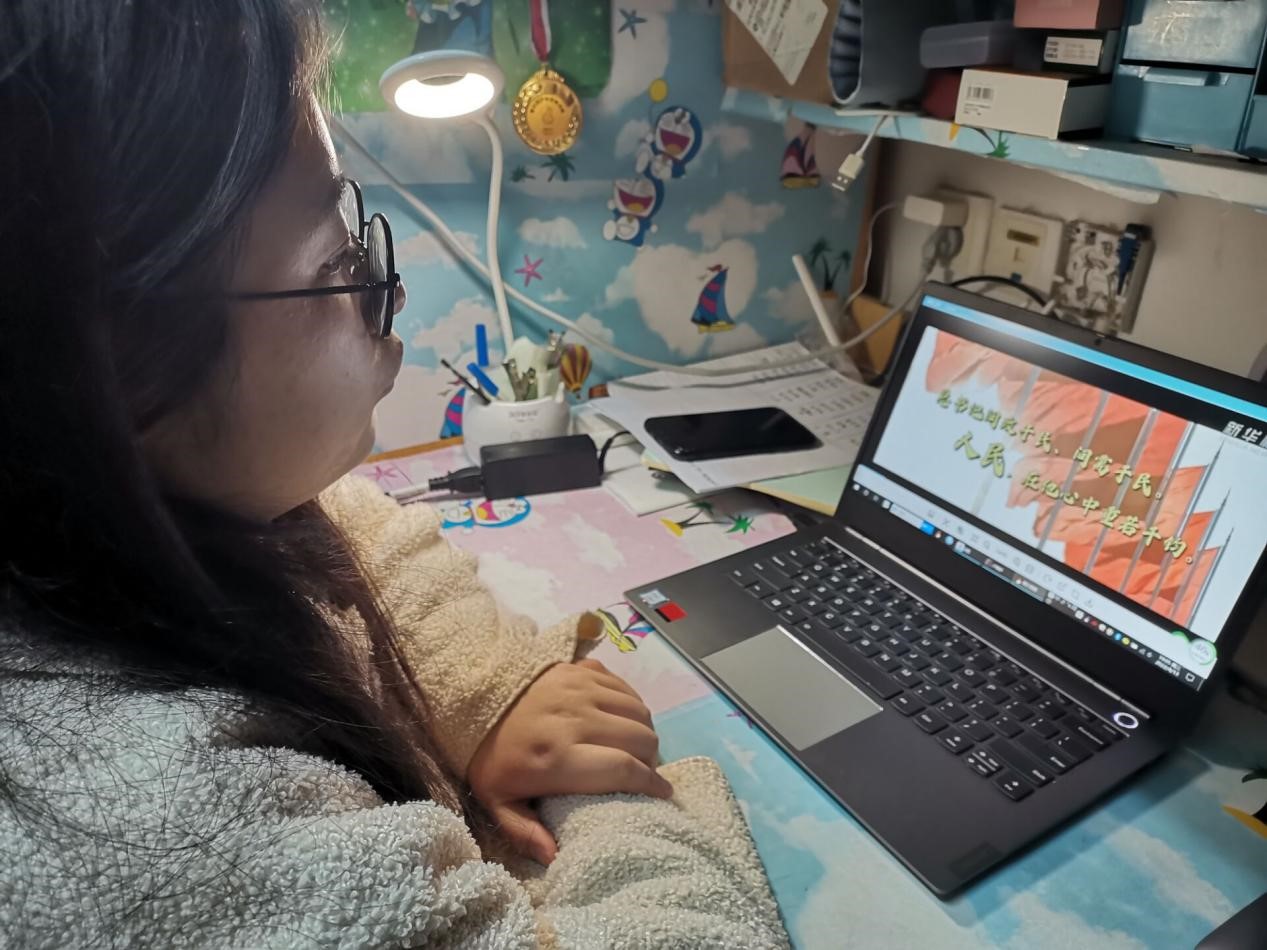 图为同学在学习关于党章的影片。记者 卢炯妤