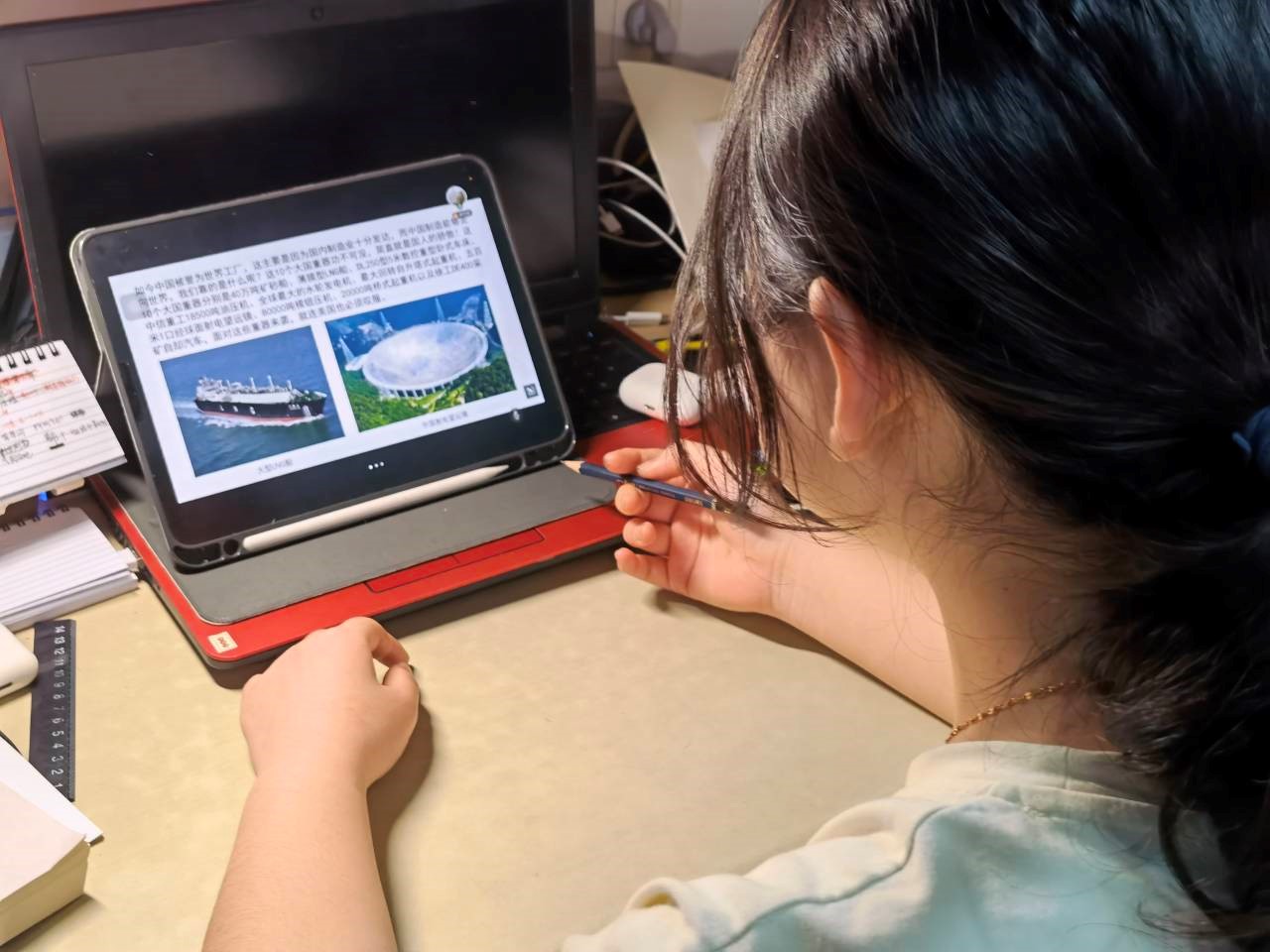 图为同学了解国家大器。记者 曹彤