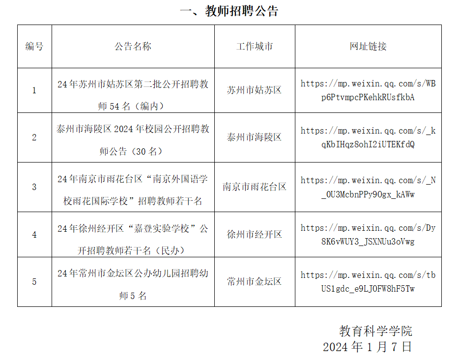 教育科学学院2023-2024学年第一学期第18周招聘信息