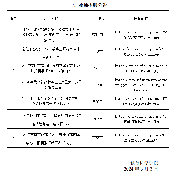 教育科学学院2023-2024学年第二学期第2周招聘信息
