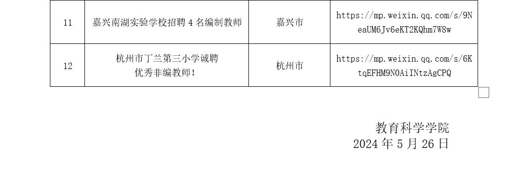 教育科学学院2023-2024学年第二学期第14周招聘信息