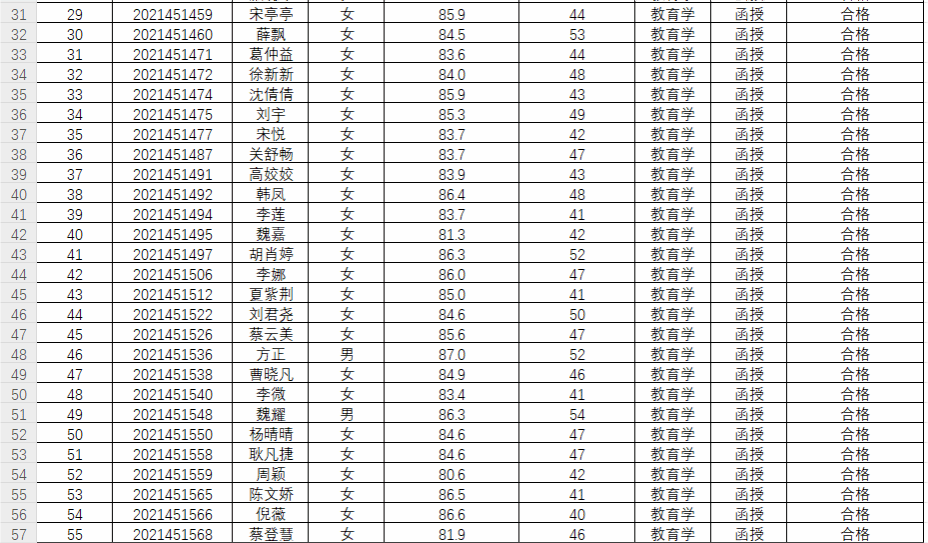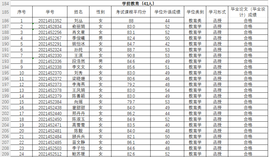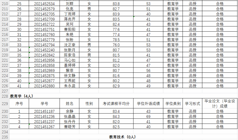 教育科学学院2023届成人继续教育本科毕业生学士学位授予情况公示