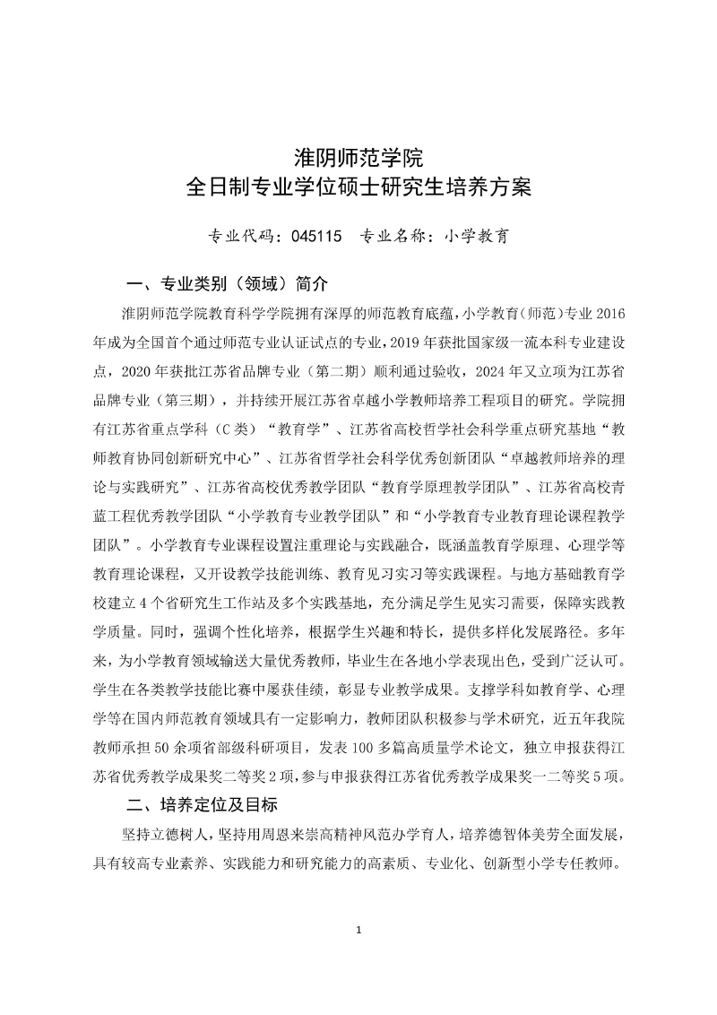045115 royal皇家88平台全日制专业学位硕士研究生培养方案(小学教育)