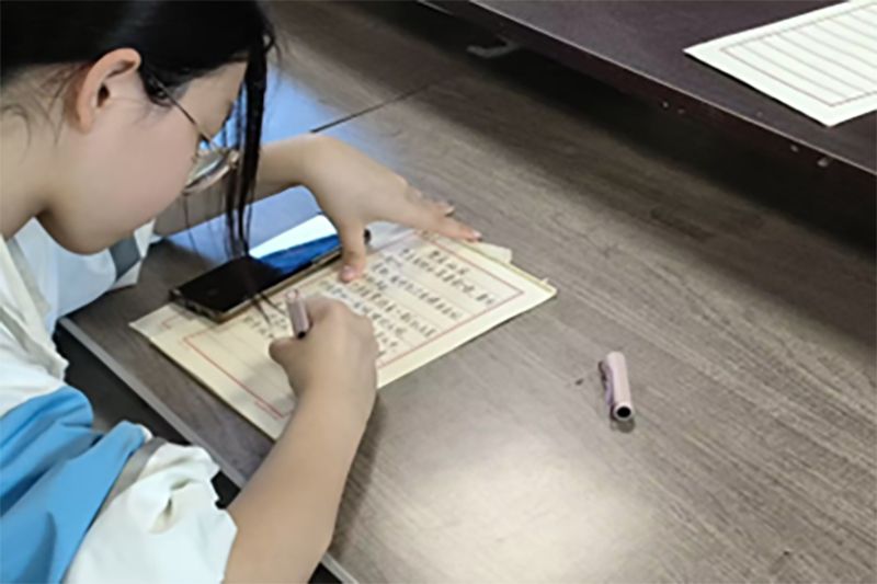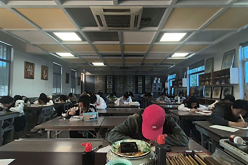 同学们埋首于书法的世界,飞扬的笔墨,弘扬的是传统精神,培育的是民族精神,继承的是爱国情怀。