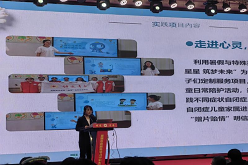 2302班王刘浏同学对“青春点亮星光,博爱照亮未来”项目进行了汇报,该项目由教科院顾伊荻老师带领,旨在完善自闭儿童关爱体系,为广大自闭儿童创造良好的成长环境。“槐青”志愿团队在活动期间积极地深入自闭症儿童康复中心,用最真挚的感情,浇灌最纯洁的心灵。此次活动共分为以下三个部分:1、了解自闭症儿童群体;2、开展多样教学活动;3、走进心灵,温馨陪护。在实践的过程中,志愿者从生活和教育上出发,关心了解自闭症儿童日常生活,在老师帮助下体会给自闭症儿童授课的方法,帮助孩子们锻炼自理能力及交流合作的能力,提升社会对自闭症的认知水平和包容性。