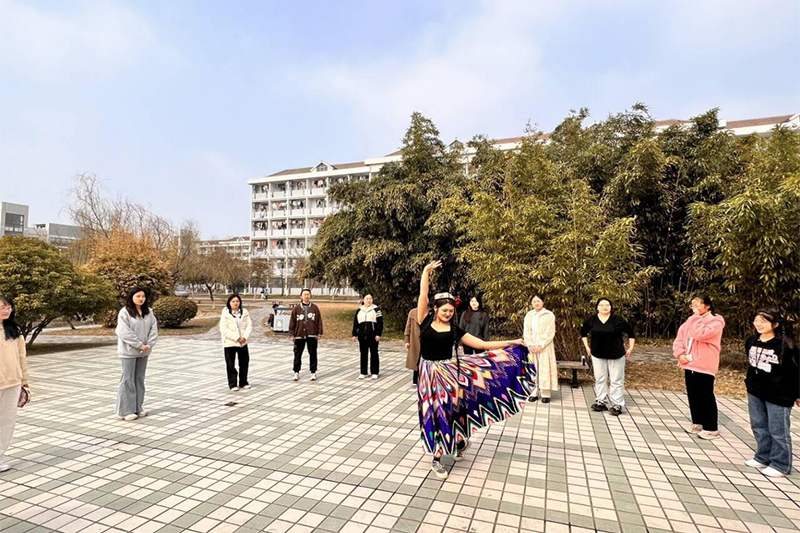 其中来自新疆的艾迪娅·哈力木拉提同学身着维吾尔服饰向同学们展示了属于他们民族的舞蹈,在活动结束之际向大家介绍了新疆服饰和舞蹈的特色。学生不仅绽放了属于自己的美,还进一步见识到了少数民族的风采特色。