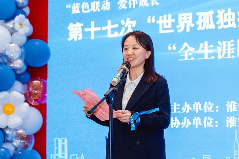 随着音乐的余音袅袅,市残联副理事长龚李萍上台致辞,她表达了对孤独症群体的关注和重视,号召全社会共同关注孤独症儿童群体、家庭及专业工作者,传递对孤独症儿童及家庭的关心和爱。淮安市妇幼保健院儿童康复科主治医师王圣雯,就孤独症谱系障碍(ASD)的早期识别及早期干预做知识讲解,助力患儿家庭更好地应对挑战。