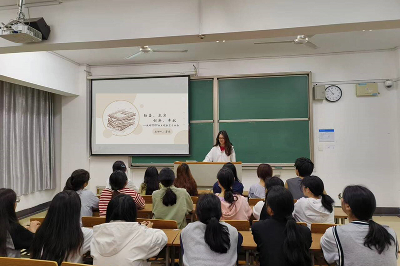 教科网4月22日电(记者 蔡悠 孙欣雨 沈王得)为响应学校主题教育月的号召,弘扬优良校风,鼓励同学们坚定理想信念、不忘初心使命,教育科学学院2207班于4月10日在崇文1-108开展“勤奋、求实、创新、奉献”主题班会。本次活动由团支书蔡悠主持,2207班全体学生参加。