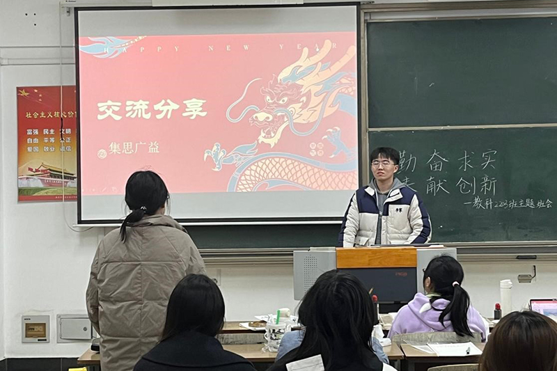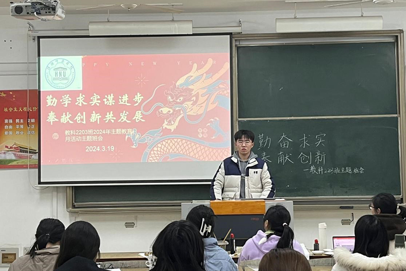 教科网4月22日电(记者 汪琨)为响应学校和学院对于建设“勤奋求实,创新奉献”的主题教育月活动,以积极校风引领优良学风,教科2203班在崇文楼1-204开展了主题教育月动员班会。