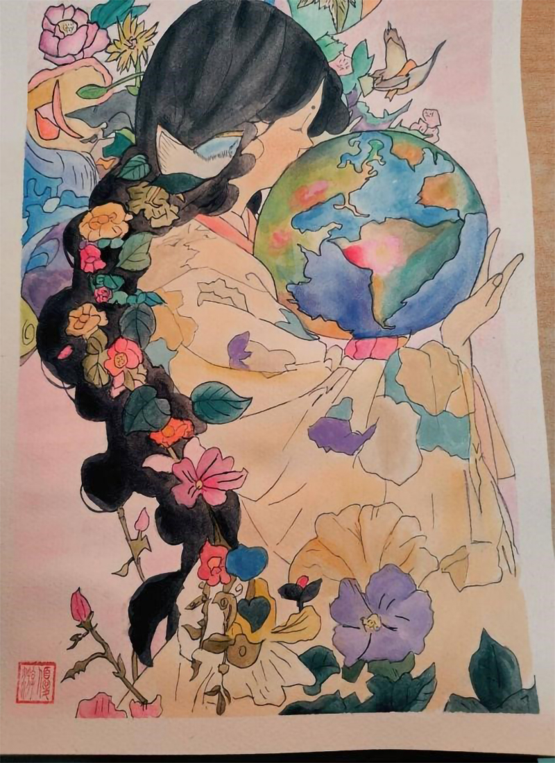 在活动期间内,同学们带着对自然环境的热爱与保护地球环境的信念,围绕主题背景“世界地球日”开展了创作,将大自然的美好与如何保护环境相融合,创作出了一幅幅精美的作品。