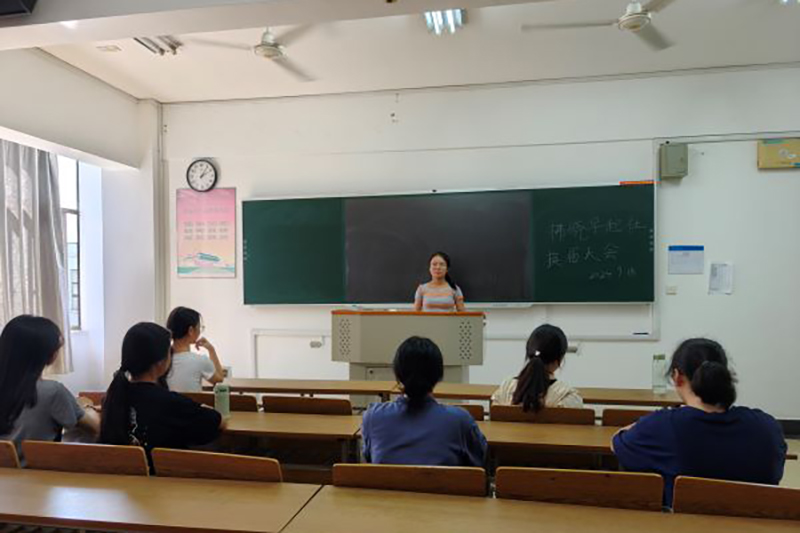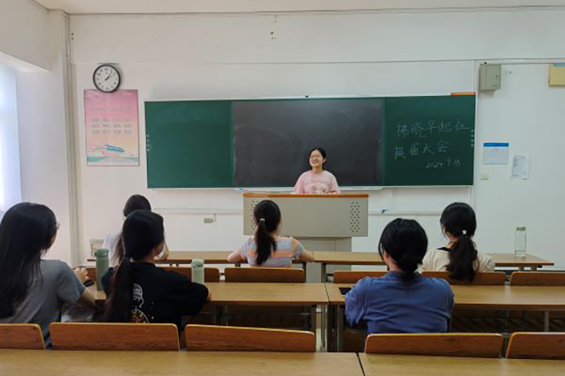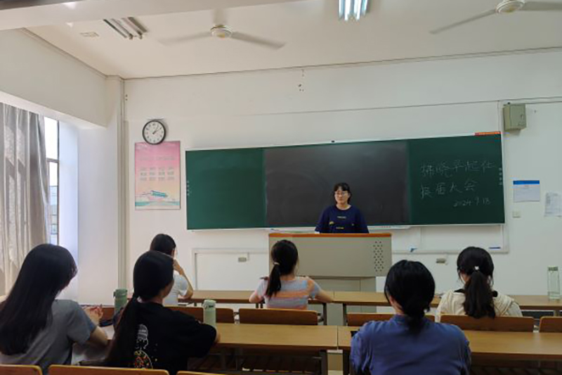紧接着大会进行第三项议程,大会宣布了新任团支书的任命决定——傅健虹同学将接任这一重要职务。她在发表就职感言时,表达了对上一任团支书的感激之情,并承诺将全力以赴,为早起社的发展贡献自己的力量。她表示,将致力于加强社团内部的沟通与合作,提升社团的凝聚力和向心力,共同推动早起社向更高目标迈进。