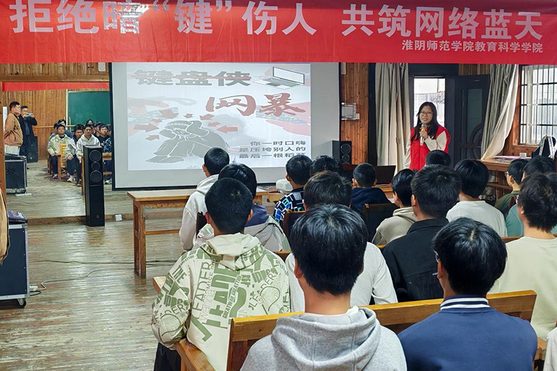 首先由向洋特殊教育学校的老师为大家介绍学校的建校历史,学校基本情况,以及学生的基本情况。随后,在向洋特别教育学校校长以及教育科学学院党委副书记戴云的带领下,同学们有序地参观了学校同学们的宿舍。接着,同学们来到了二楼的报告厅对校内学生进行本次活动的主题宣讲,2302班的班长范文竹进行宣讲,讲述网络暴力带来的伤害,并举例当今网络暴力的实例,对学生们进行教育引导。通过此次主题活动宣讲,同学们对网络暴力能够有一个更好的了解,还网络一个清净之地。希望我们说出伤害性话语的时候,能够再三思考。