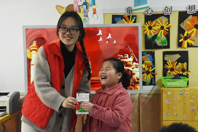 活动接近尾声,志愿者们为孩子们发放了精心制作的卡片。卡片上不仅有温暖的祝福话语,还绘制了孩子们喜爱的卡通形象。志愿者们希望这些卡片能成为孩子们生活中的小确幸,陪伴他们度过美好的时光。收到卡片的孩子们爱不释手,有的轻轻抚摸卡片,有的向志愿者展示自己的喜悦。