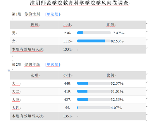 教科网320日电(记者 金许儿 吴雪纯)一年一度的主题教育月活动已全面启动,本年度主题教育月主题是“学习在我 强国有我”,为提高活动方案的针对性与时效性,活动前期,学院特制定了学风问卷调查,请各班级学生参与问卷填写,调查结果显示绝大多数同学认为学校有必要加强教学环节学生出勤考核,并不断完善学风建设规章制度。学生认为目前比较大的问题在于自我控制能力差与缺乏学习兴趣,学院将参考问卷分析的结果制定活动方案,为学生营造更好的学习氛围。