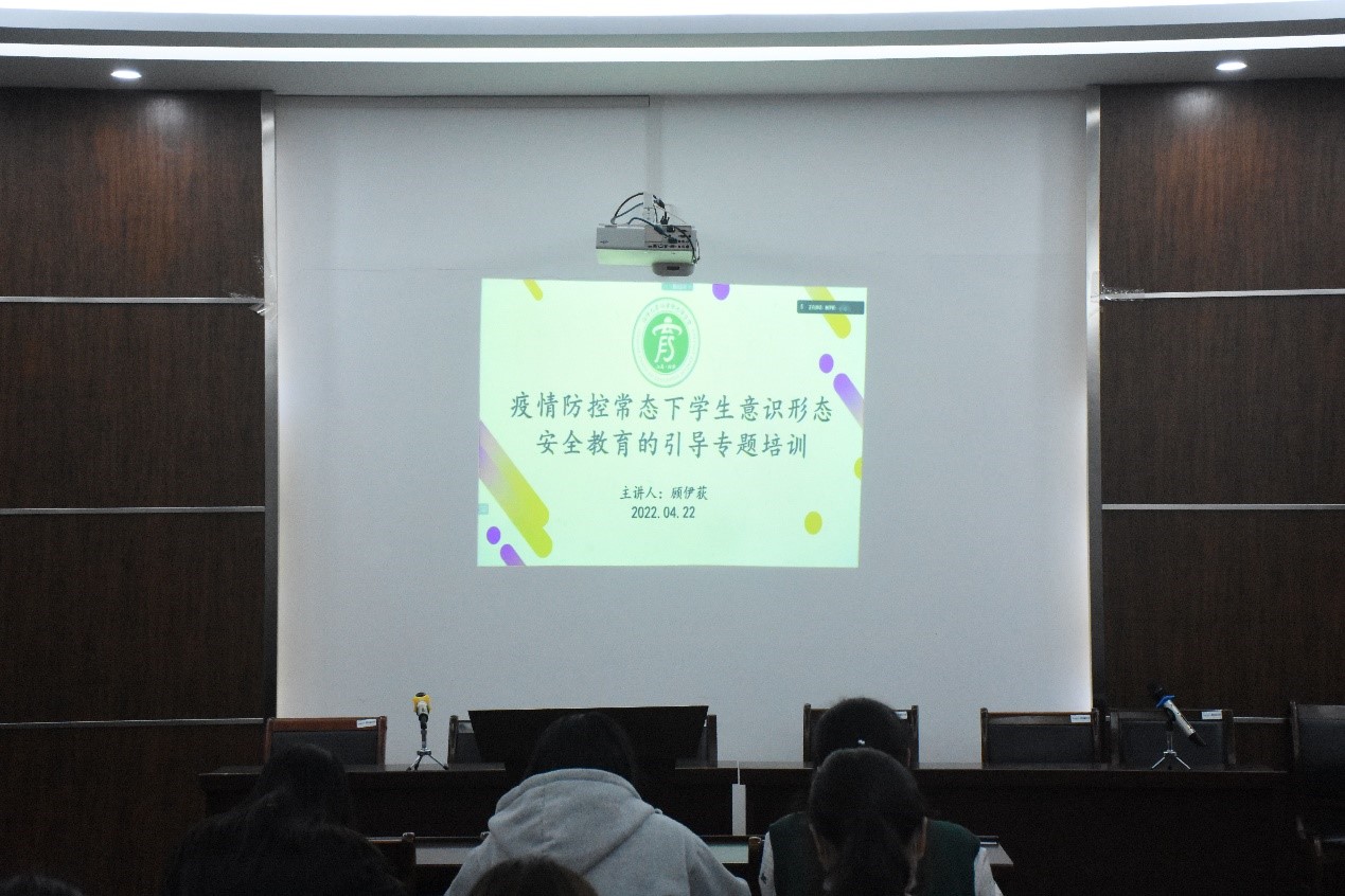 教科网4月26日电记者 俞蕾 吴雪纯 肖妍梅)为了增强学生干部的服务意识,勉励同学们树立正确的安全教育意识形态,4月22日晚,royal皇家88平台教育科学学院举办“疫情防控常态下学生意识形态安全教育的引导”专题培训,教科院团委书记顾伊荻就疫情防控和安全教育提出具体要求,院团委各部门学生干部参加会议。