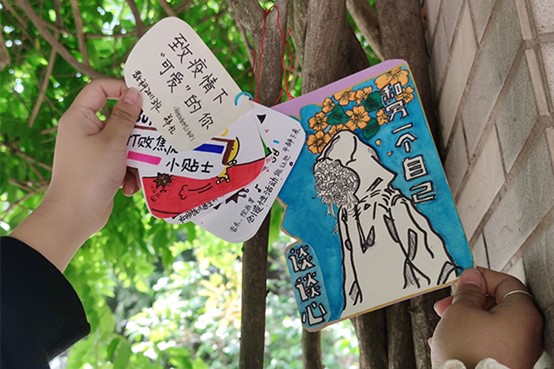 心与心言 ,疫下相约。 新冠肺炎疫情防控新常态下,为缓解同学们的焦虑情绪,平衡课内外生活,博爱心理健康协会举办了以“心与心言,‘疫’下相约”为主题的系列活动,采取线上线下相结合的组织形式,活动中,志愿者和求助者进行了多途径的心理交流。求助者们纷纷表示这次活动让他们受益很多,不仅懂得了如何调节、合理管控心理压力,还积累了许多提升心理健康的方法途径。同学们还通过制作卡片的形式,跟大家分享了自己的心理调适小方法,让心理知识在我们身边更大范围地传播开来。