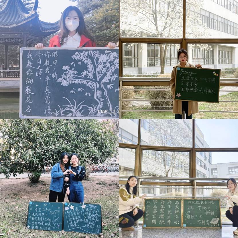 时值三月好春光,校园里的风景亦令人心动。在该项活动中,教科学子用工整的粉笔字将心中的美好祝福都写于那一块块黑板之上。有人说“恰逢梅柳动,高兴逐春生”,有人说“乐亦无穷,保持热爱”,还有人说“愿岁并谢,与长友兮”,无论是好友间的相互祝福,还是给予自己的鼓励,亦或是向他人表达由衷的感谢,都将与这美丽的校园春景汇入图片,留下一段独特的时光印记。