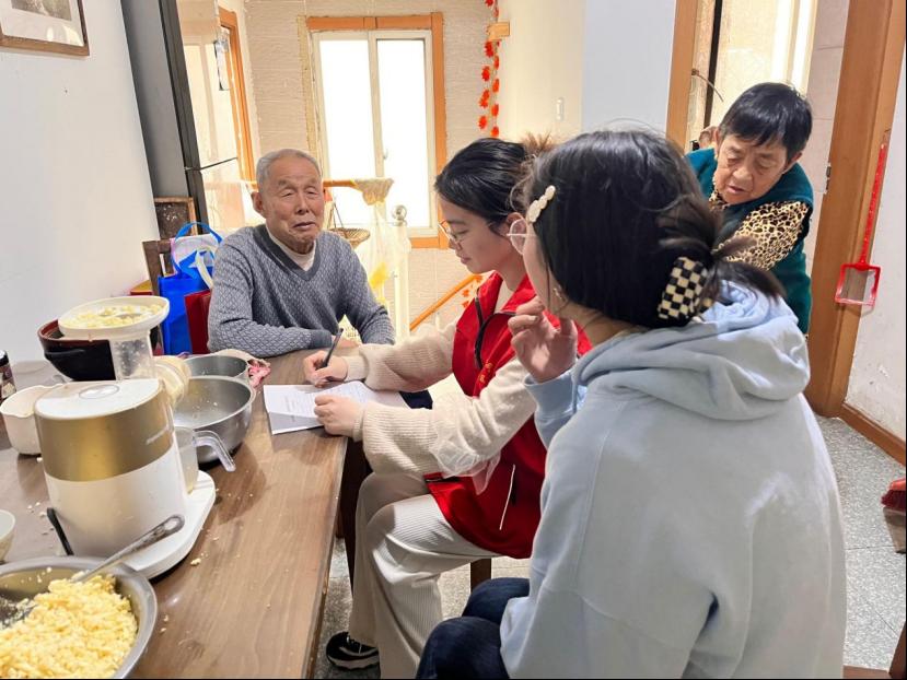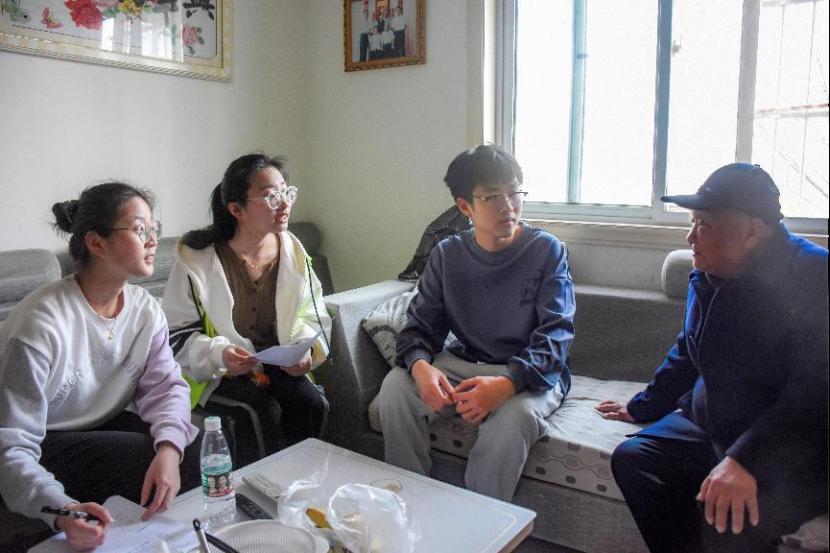 图为志愿者上门进行探望、访谈。记者 颜静怡