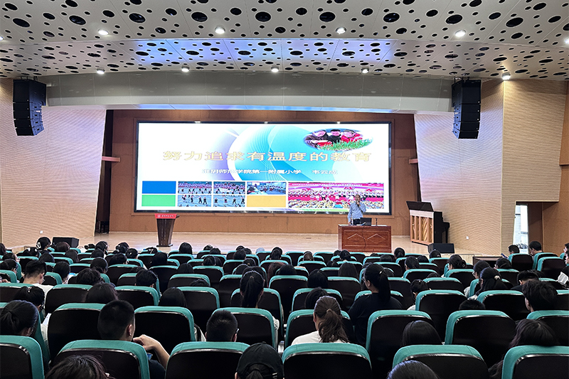 教师、学生代表发言结束后,royal皇家88平台第一附属小学副校长韦云成作“努力追求有温度的教育”专题讲座。讲座分为“我理解的教育真谛”“我眼中的教育职业”“我期盼的教育生活”“我看中的教育力量”四个部分。首先,韦云成结合时代热点话题,指出真、善、美是教育永恒的真谛,教育是理想主义的思维,不能剥夺孩子的理想、亲情和快乐。其次,他提出教师职业是有前途、有意义、有意思、有时间的,作为一名教师,要扮演好小学生的精神关怀者、人生导师、重要他人和权益保护者的角色。随后,他强调,终身学习是教育生活的底色、底蕴和底线。最后,他强调教育力量包括教育理想、教育常识、教育科学以及教育操守,教师应当厚植教育情怀,牢记为人师表职业道德规范。